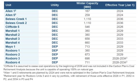 Figure 3: Coal Unit Retirements (effective Jan 1 of year shown) [[Credit: Duke Energy’s Carbon Plan, Ch. 3: Portfolios, p.7]
