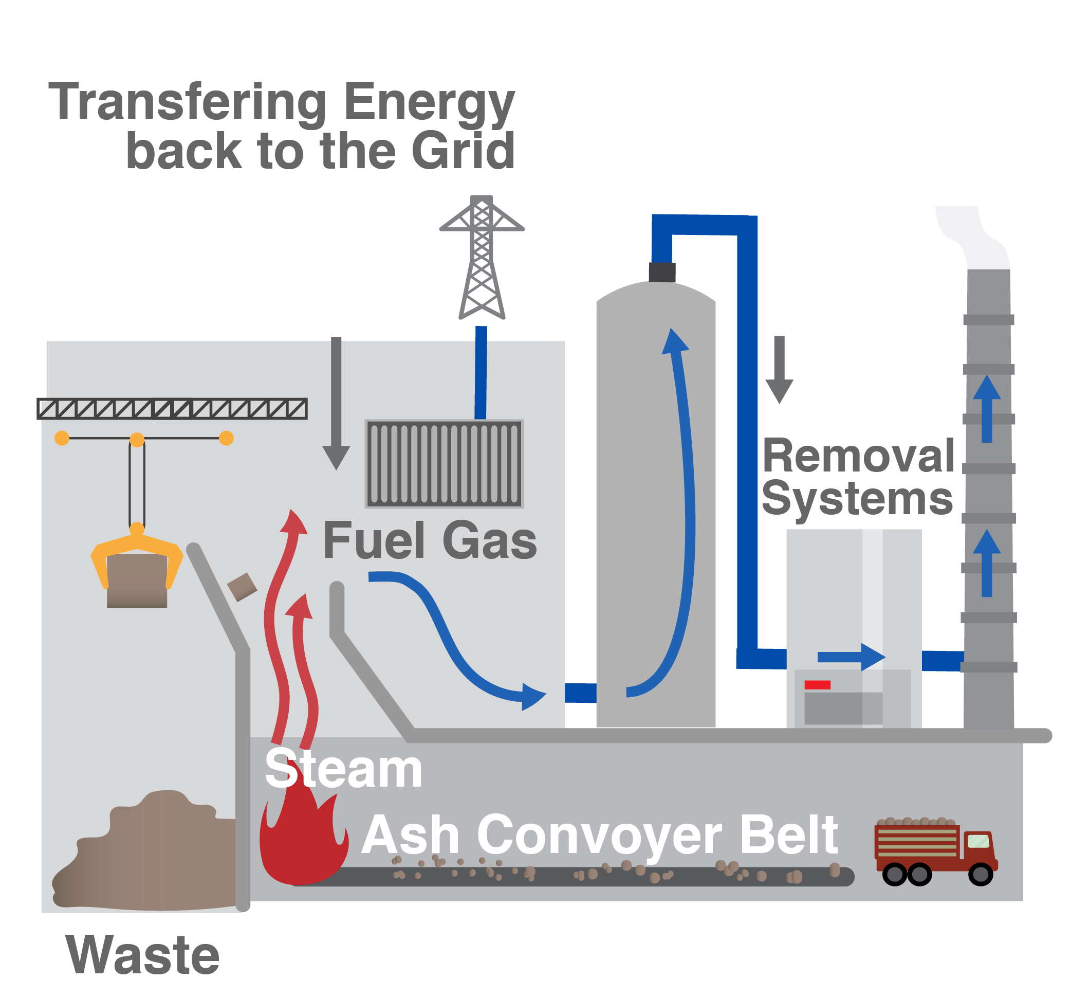 Gases, usually methane, are collected from landfills as waste degrades and are later burned to create electricity.